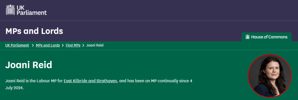 “Reid, who represents East Kilbride and Strathaven, said: