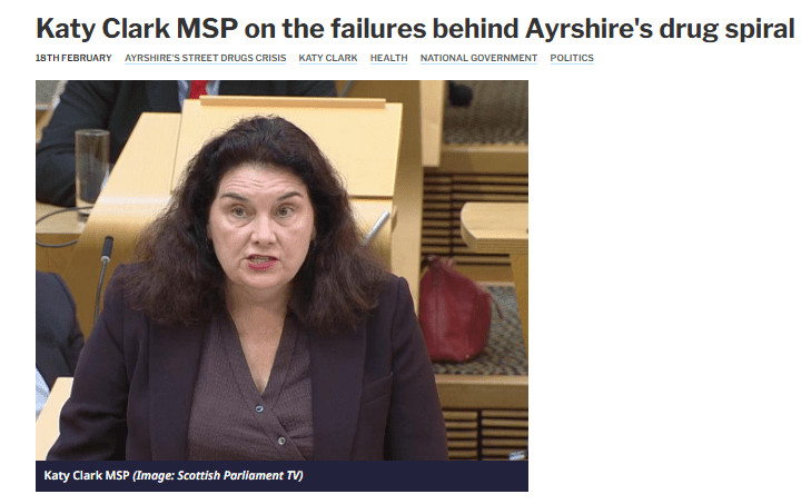 1. WEST Scotland Labour MSP Katy Clark has laid the blame for Ayrshire’s spiralling drug problem at the feet of the SNP government“.