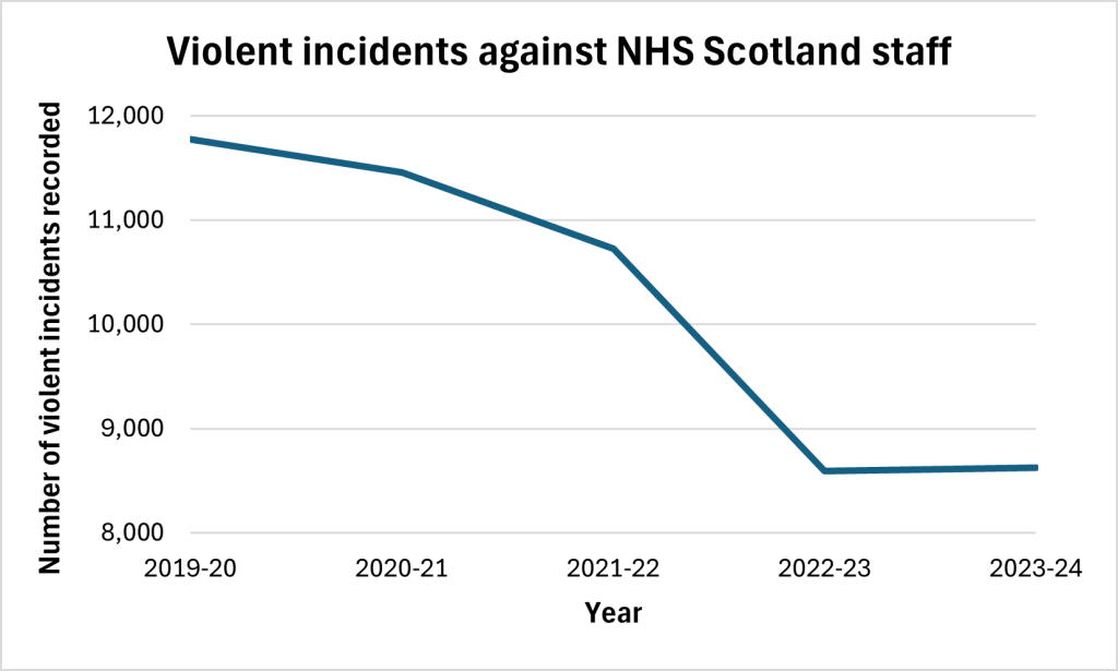 From Healthcare.scot, the graph above and in the light of the graph, the slightly puzzling headline – Shocking levels of violence towards NHS staff – and this: