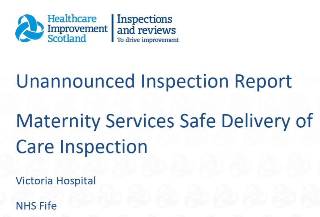 From the actual report: Healthcare Improvement Scotland (March 19, 2026) Unannounced Inspection Report Maternity Services Safe Delivery of Care Inspection – Victoria Hospital NHS Fife. (https://www.healthcareimprovementscotland.scot/wp-content/uploads/2026/03/HIS_MAT_LREP_VH_FIFE_MAR26_FINAL-1.pdf )