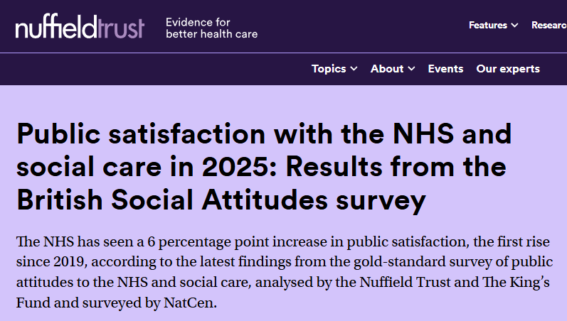 Public satisfaction with the NHS has risen for the first time since 2019, but people remain deeply frustrated with stubbornly long waits to receive GP, A&E or hospital care. The proportion of voters in Britain satisfied with the way the NHS runs has increased from the record low of 21% seen last year to 26%. At the same time dissatisfaction with the health service fell 8% – the biggest drop since 1998 – although it remains high at 51%.