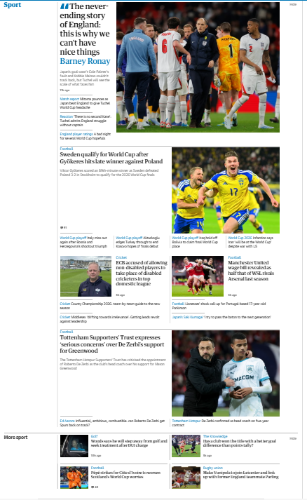 See those Ivory Coast players in orange, very bottom left in the (just) ‘More sport’ afterthought section?