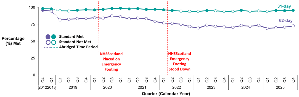From Public Health Scotland Cancer waiting times 1 October to 31 December 2025, published today: