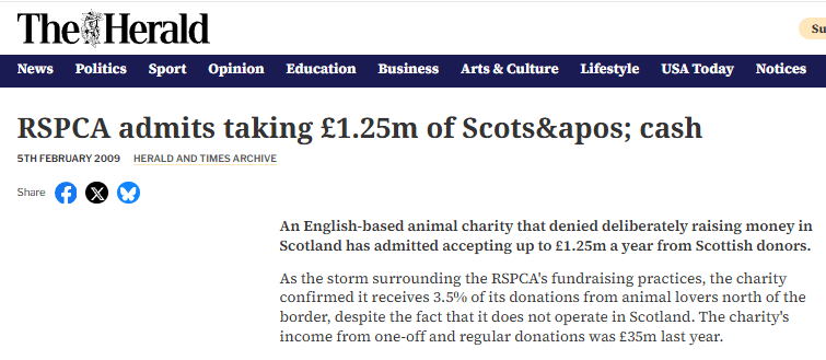 Utterly disgraceful the English RSPCA are taking funding from Scotland, when that huge sum of money could be spent helping animals IN Scotland.