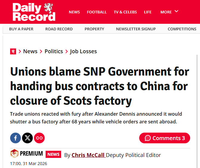 They had £58 million from you since 2020 and in September 2025, a further £4.1 million. In March 2026 won a Scottish Government contract for 123 buses but Chinese manufacturer Yutong won a contract for 166. On March 31, 2026, the owners announced full closure.