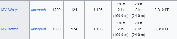 Washington State Ferries operate out of the affluent city of Seattle in the USA and serve 20 ports with 21 vessels. 9 of these large ferries, above, aged between 45 and 59 years are older than the just retired CalMac boat, MV Isle of Arran, aged 42.