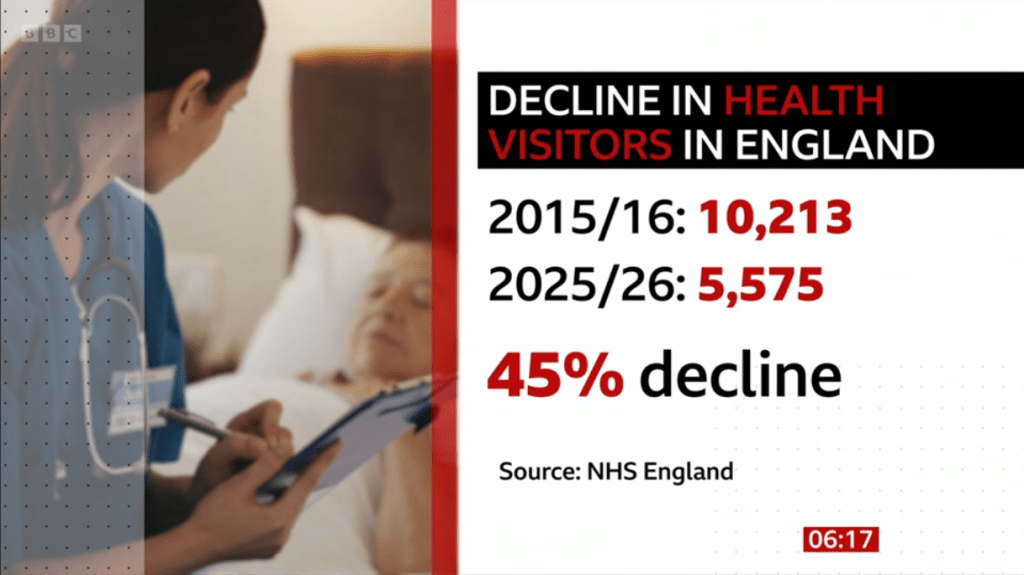 In March 2026, the UK Government confirmed the key importance of health visiting as part of its strategy for preventative health care. Labour has been in government for nearly two years now so the above figures must a serious blow for them.