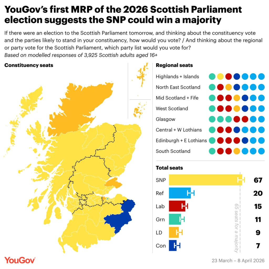 YouGov, no friend of the SNP sees no sign of Reform UK coming first anywhere.