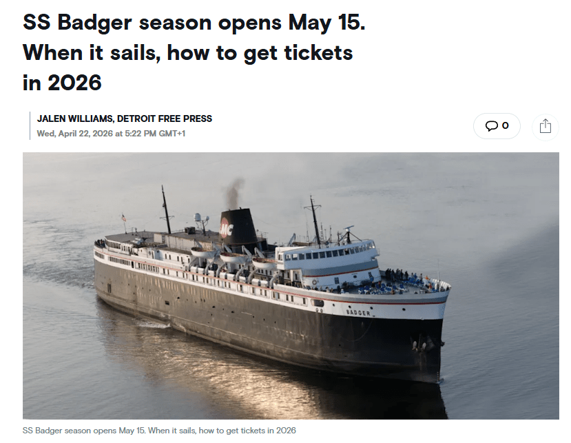 The historic Lake Michigan auto and passenger ferry SS Badger, the last coal-fired steamship operating on the Great Lakes, is set to open its season Friday, May 15.