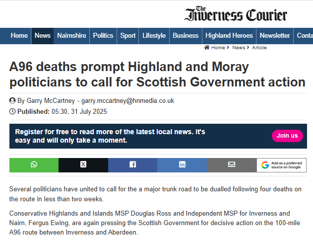 In July 2025, opposition MSPs misrepresented the road traffic accident rate on the A96 between Aberdeen and Inverness, with a view to politicising them in attacks on the Scottish Government.