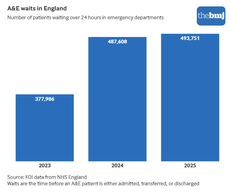 To get a reasonable estimate for the 2025 figure, we could use the published ‘over 12-hour waits’ in 2023, 2024 and 2025, to estimate what has happened to the ‘over 24 figure’ since then.