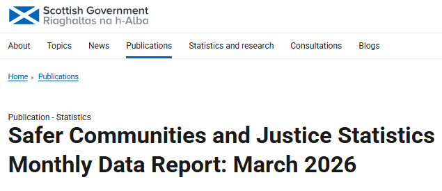 From Safer Communities and Justice Statistics Monthly Data Report: March 2026 published today: